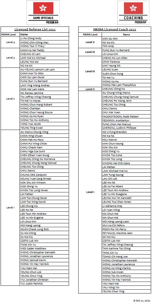 HKIHA Licenses Referee & Coach 2022