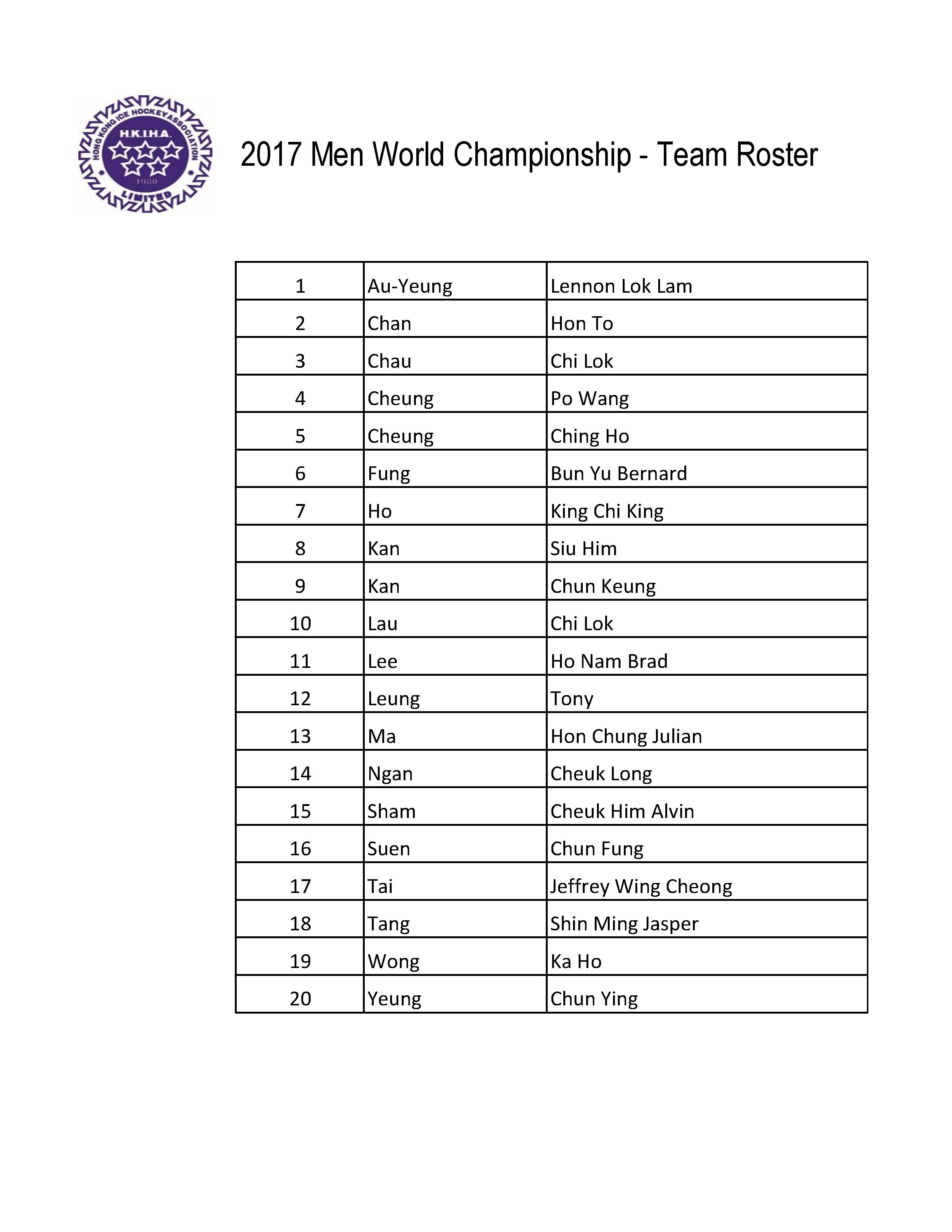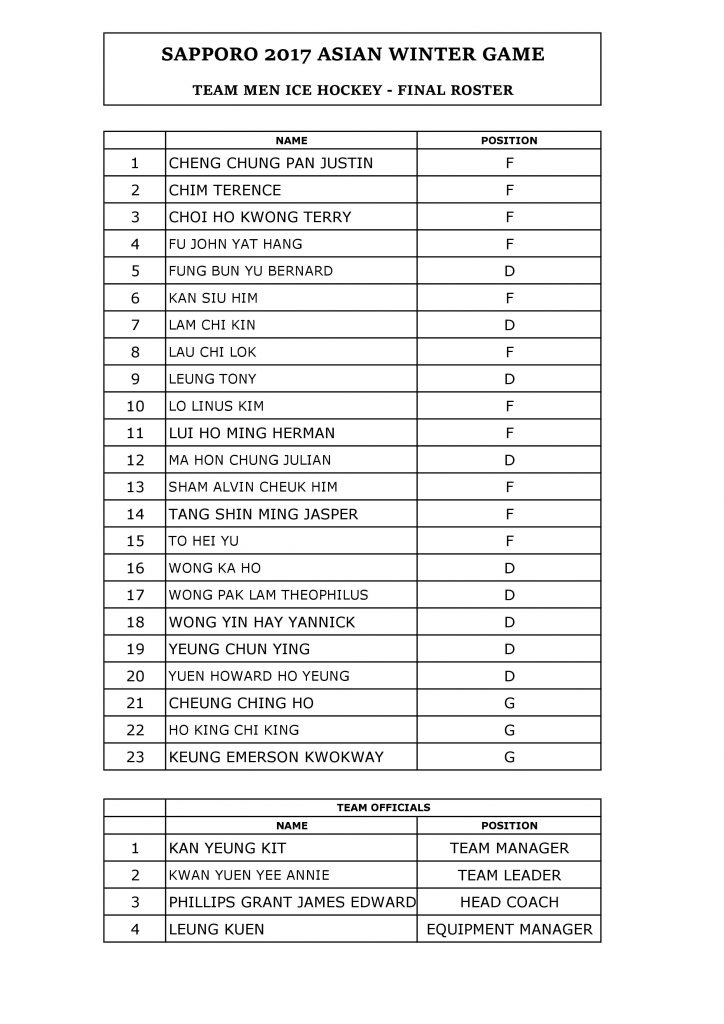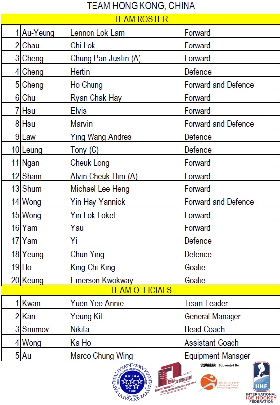 | TEAM HONG KONG ROSTER | ||